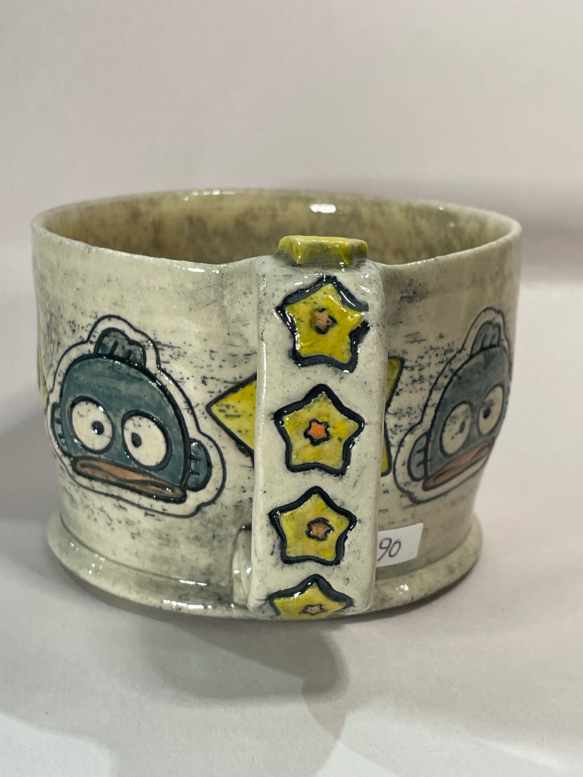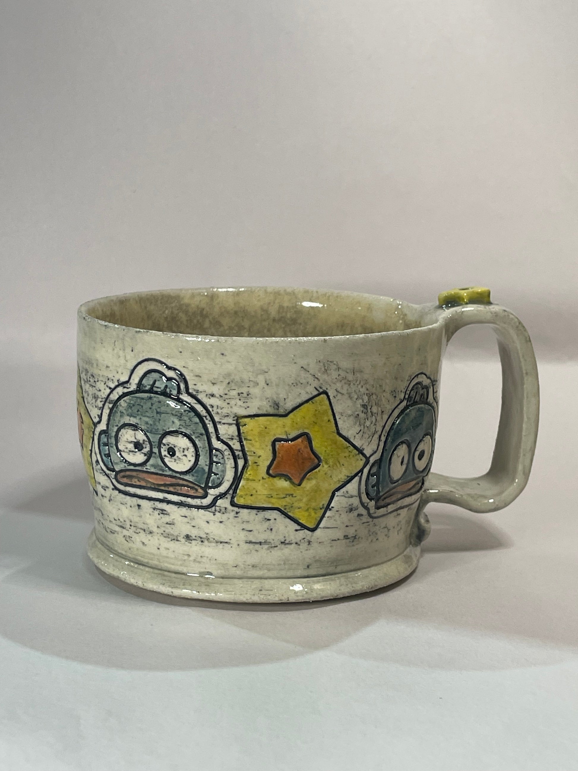 This adorable S@nrio inspired mug brings cheerful energy and retro charm to your drinkware collection. Crafted from ceramic, it features a playful water creature design surrounded by raised yellow dimensional stars for a fun, tactile touch. The glossy finish enhances its bright colors, making it as eye-catching as it is functional. Perfect for enjoying coffee, tea, or your favorite cozy drink, it’s a whimsical piece that brightens any day. This mug adds a splash of happiness to every sip.