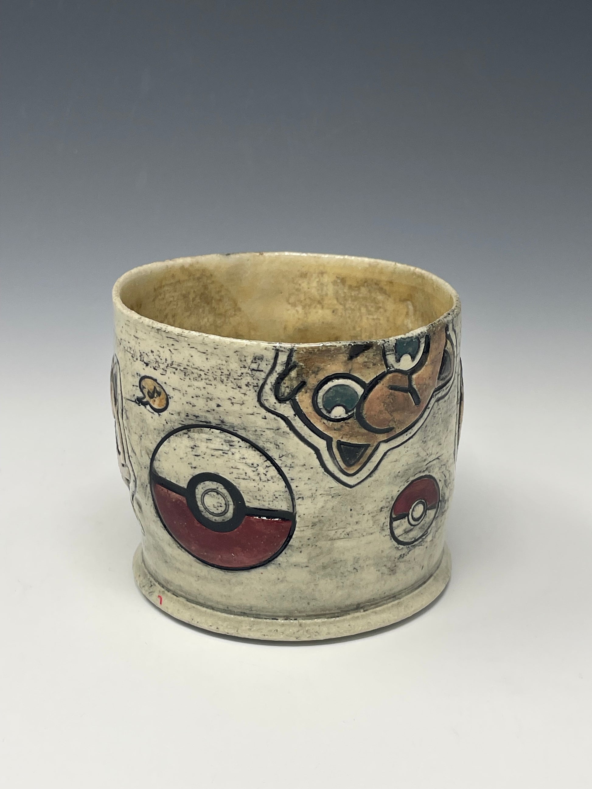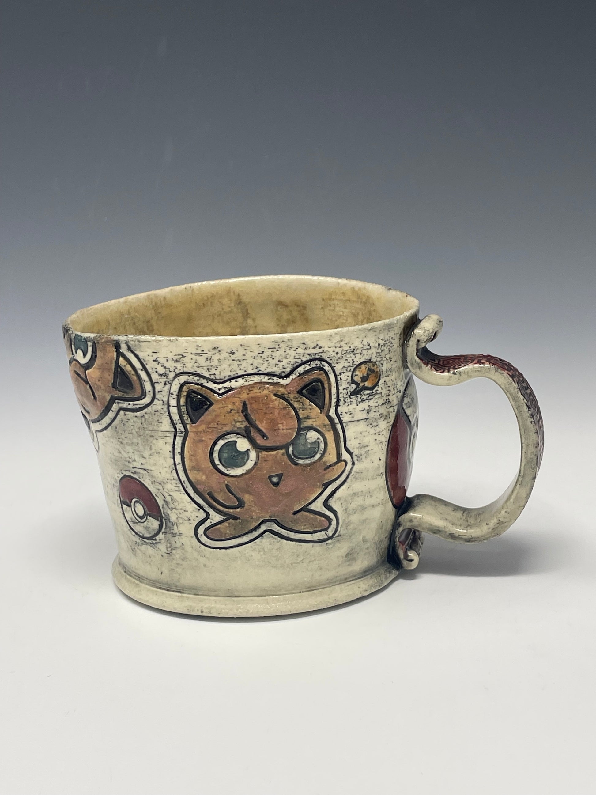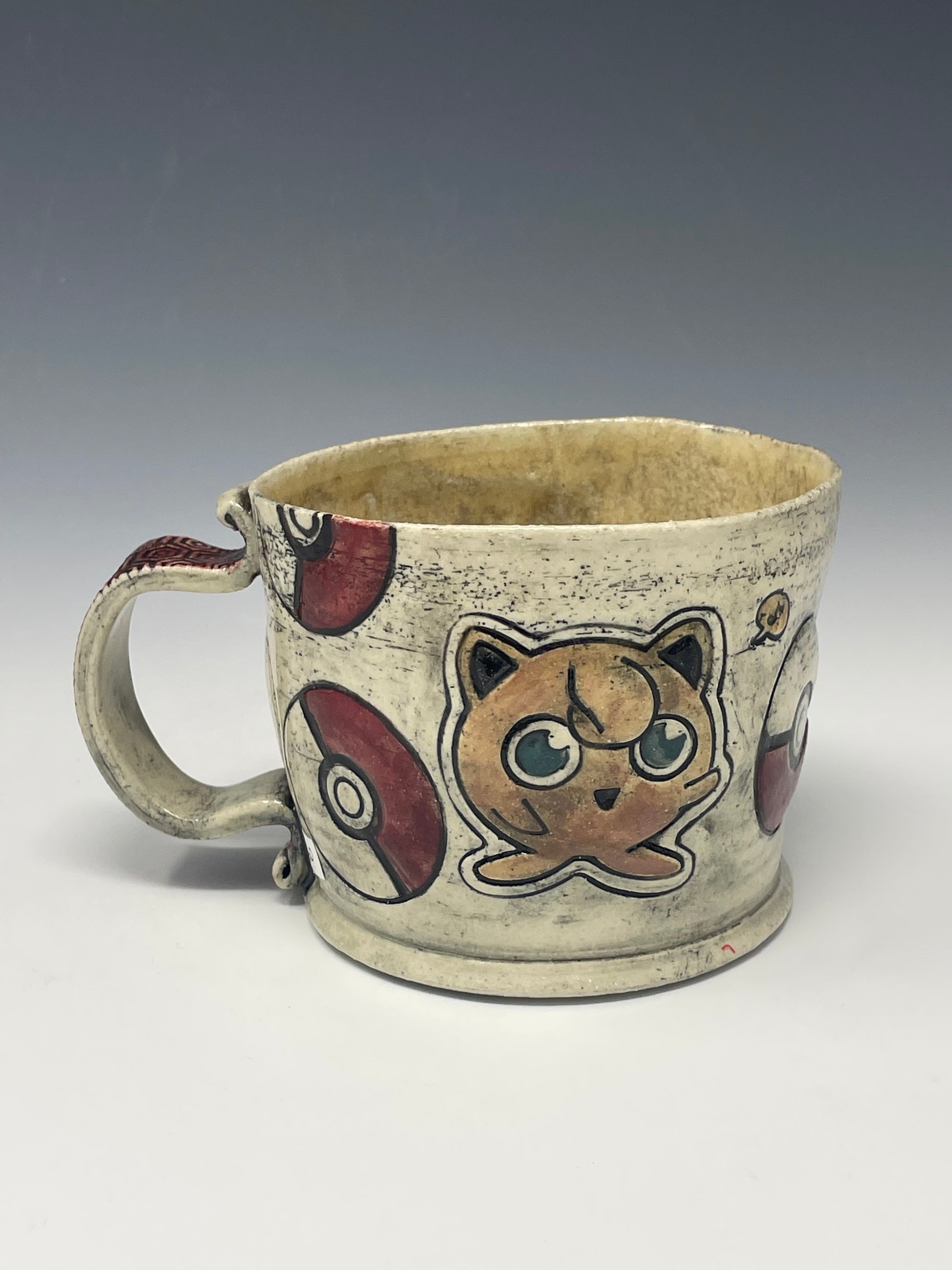 This delightful white mug adds a touch of quirky charm to your daily routine. Handcrafted from durable ceramic, it features a confused yet lovable J1gg1y Puf design paired with a bold Poké Ball motif. The glossy white clay enhances the playful artwork, making it a standout piece in any pocket monster collection.